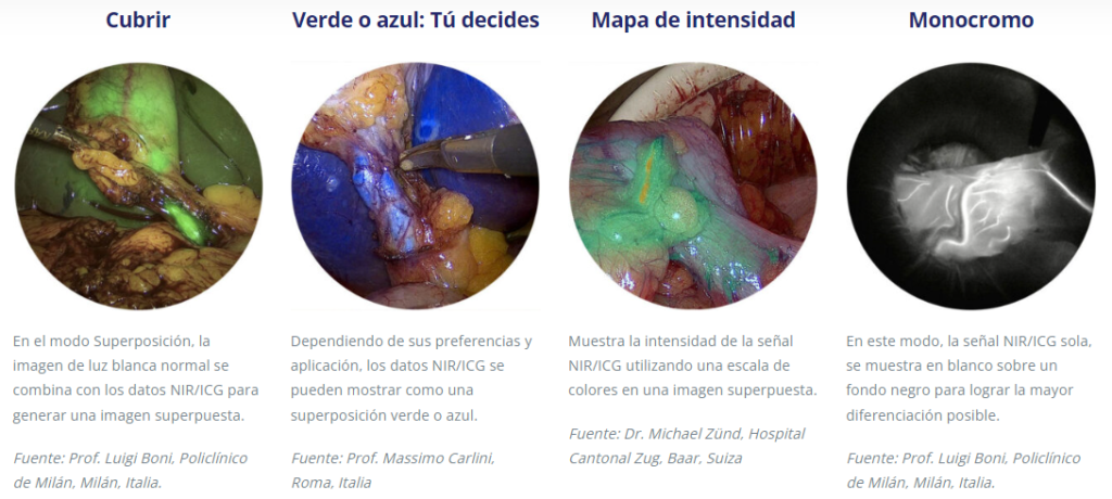 para visualizar la señal NIR/ICG. Entre otros, un modo que permite visualizar la información NIR/
